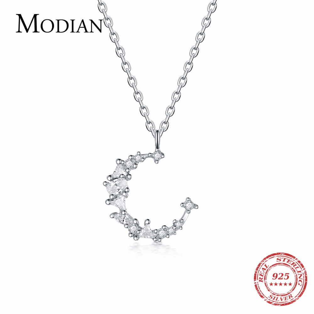 925 sterling silver Irregul Moon necklaces pendant fashion sterling silver jewelry Cubic Zirconia Necklace Charm Chain for Women – Sumsfashion