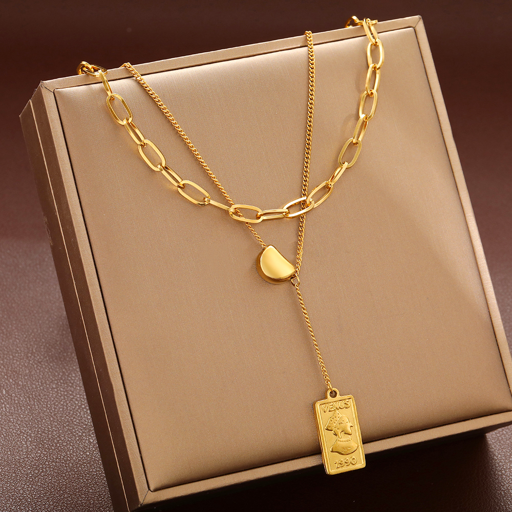 Stainless Steel Necklaces Grunge VENUS 1990 Pendants Streetwear Egirl Multilayer Chain Choker Necklace For Women Jewelry Gold Color – Sumsfashion